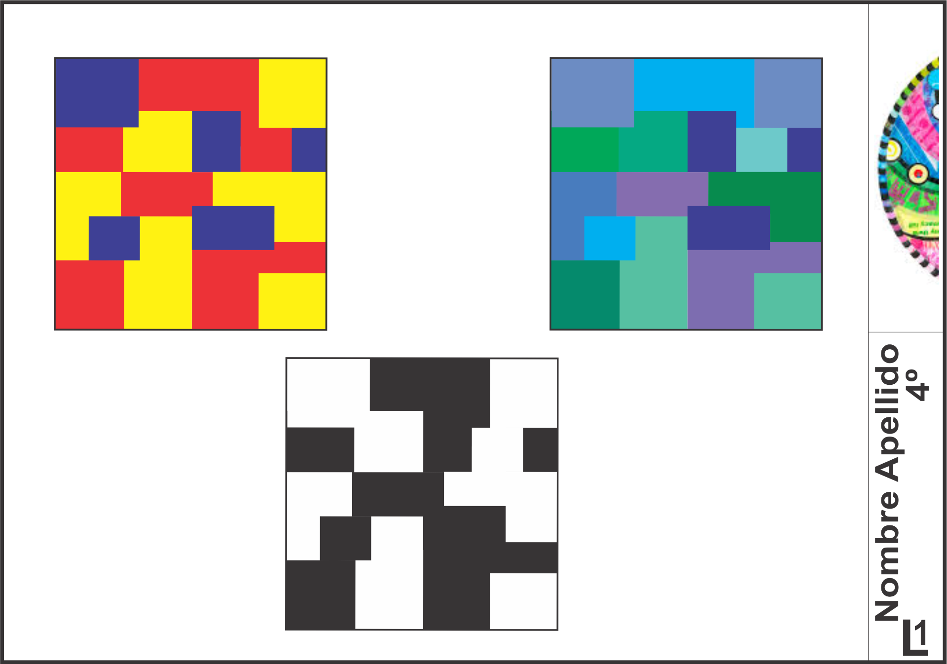En cada uno de ellos trazar líneas paralelas a los lados del cuadrado de forma que generen figuras geométricas.